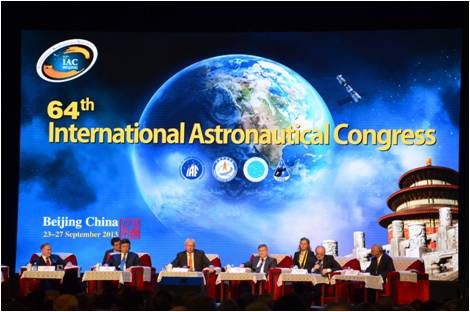 2013年9月23日至27日,第64屆國際宇航大會在國家會議中心隆重召開。國家副主席李源潮代表習近平主席和中國政府致詞,全國政協副主席韓啟德出席,中國航天科技集團公司許達哲董事長主持開幕式,來自美國、歐洲、俄羅斯、日本、中國、印度的航天局長齊聚一堂,74個國家和地區的3600余名航天精英參會。